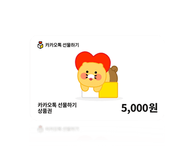 - 카카오페이지 5,000원: 카톡메시지로 경품이 지급되며, 메시지내용에 따라서 카카오 선물하기의 선물함에서 확인하실 수 있습니다.