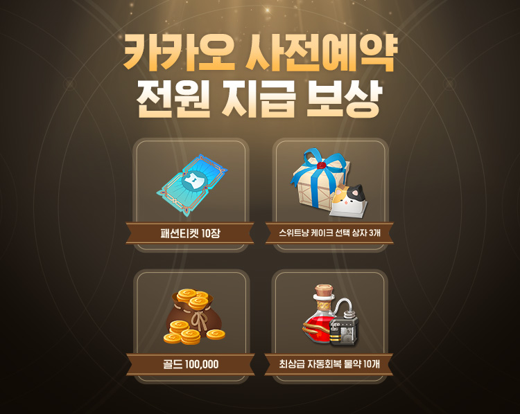 - 해외전화번호 계정이거나, 카카오톡 연결이 안된 계정의 경우 사전예약 보상을 받으실 수 없습니다.
