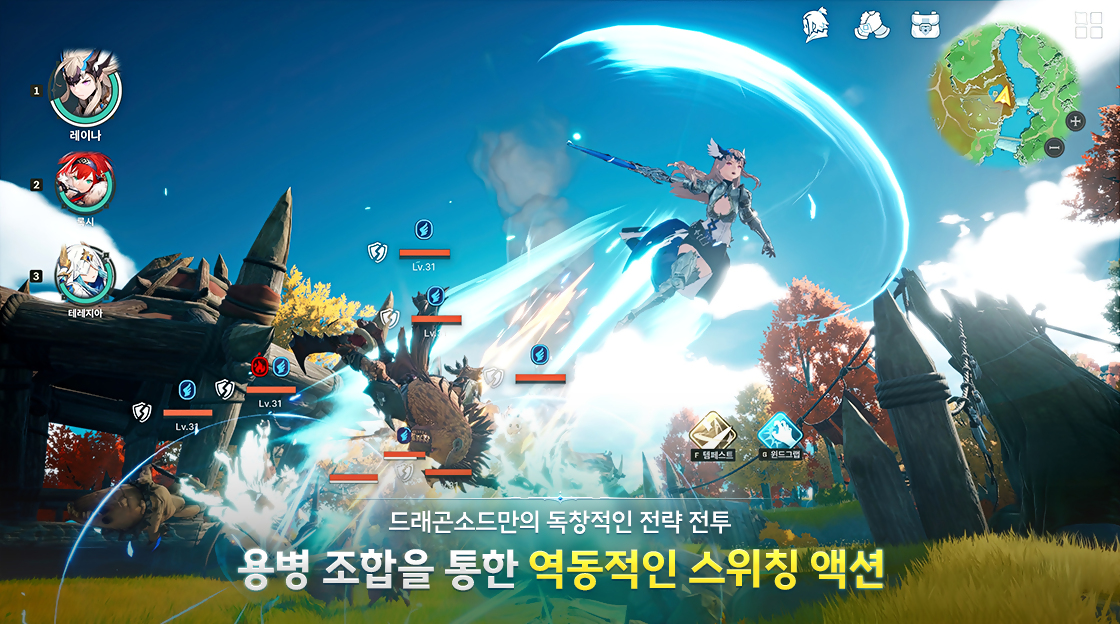 3명의 캐릭터를 실시간으로 전환하며, 다양한 스킬과 효과를 조합하세요!
