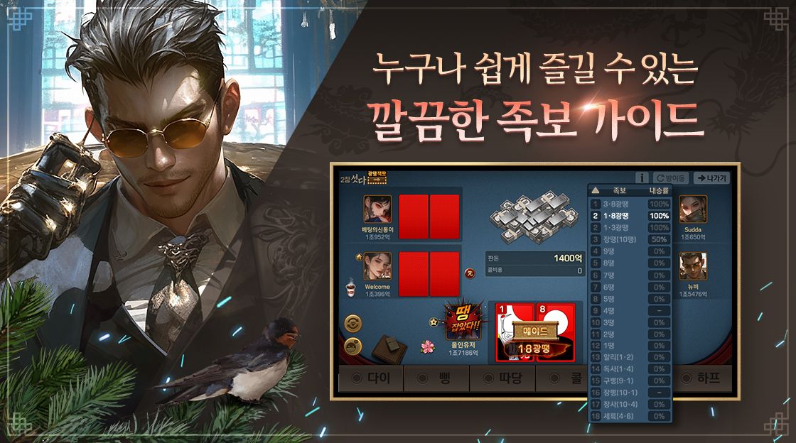 진짜 섯다의 손맛은 그대로, 더욱 감각적인 섯다의 재미를 선사합니다.
