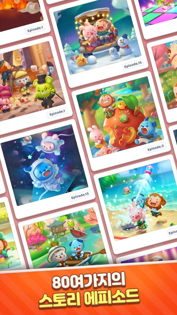 - 애니팡 프렌즈 캐릭터들이 팡팡! 귀여운 캐릭터들과 함께 퍼즐 플레이!
